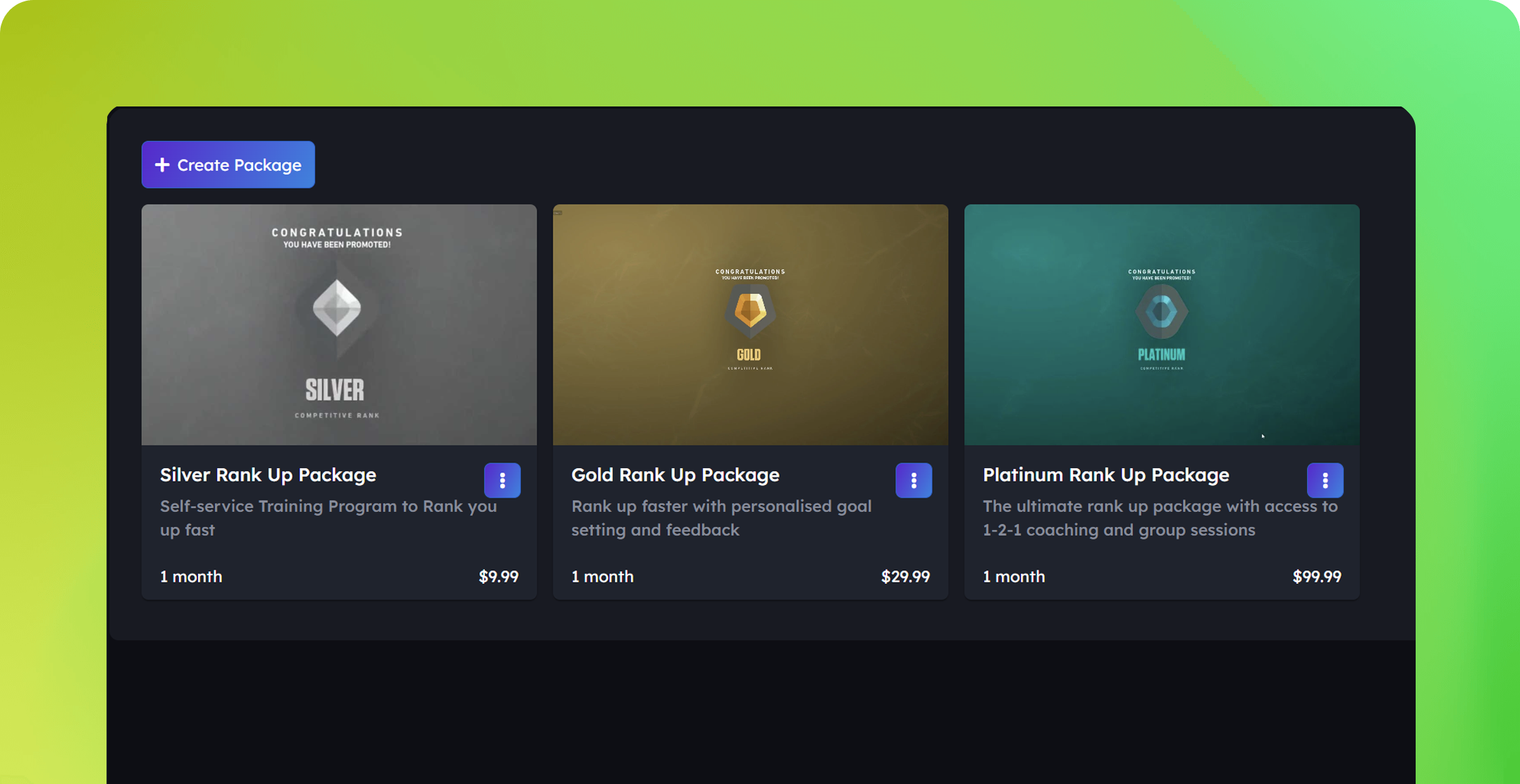 Sign up now to configure pricing, create packages and immediately start collecting payments for your coaching services.